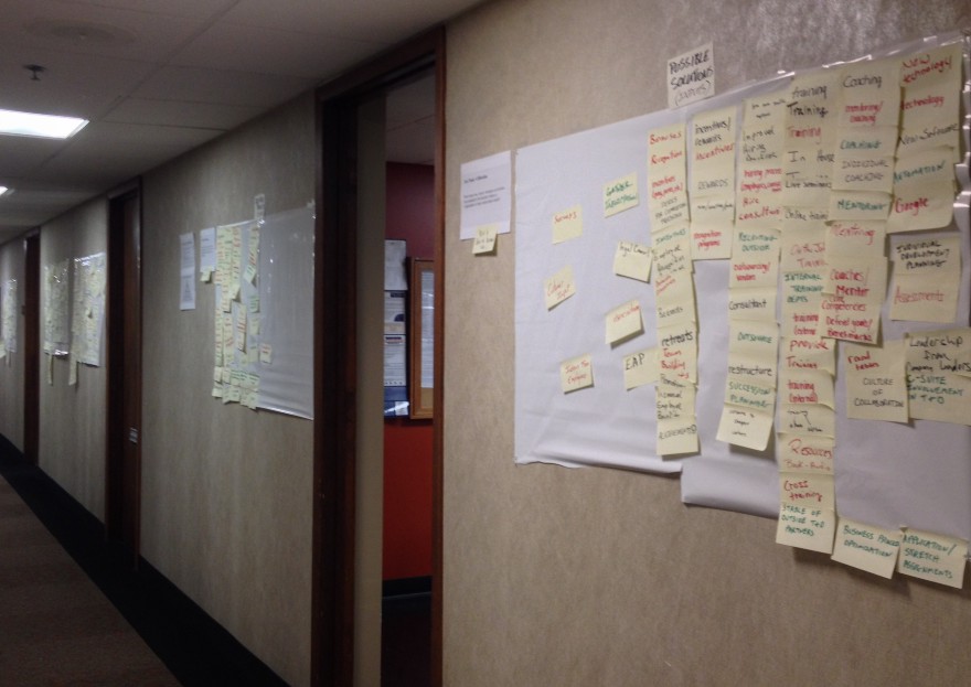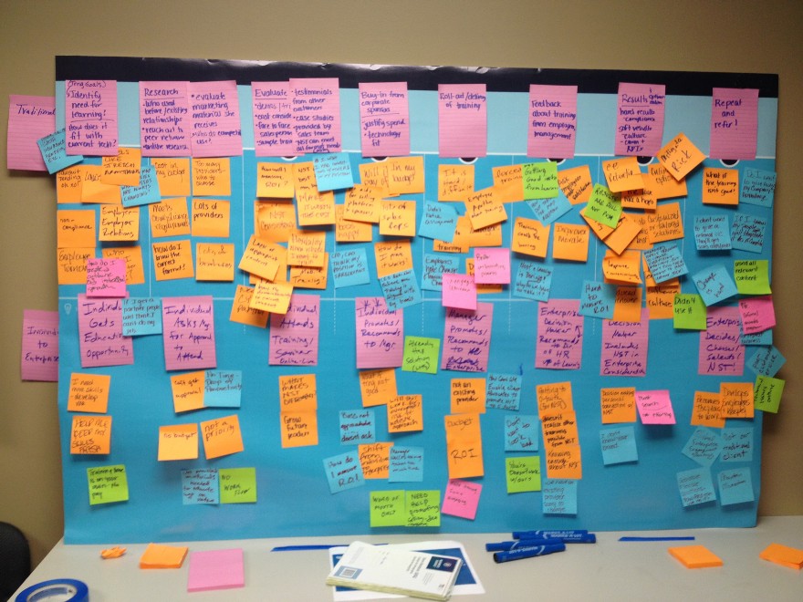 Piggy-backing off of our efforts, the vendor ran a day-long collaborative workshop fleshing out the remaining personas, their journey maps, and possible solutions for the future version of the application I worked on (a full redesign was now in talks). Much of our work was validated by their process as well as giving the culture a much needed shock of intense collaboration. The additional output pushed our efforts even further and the similarity between processes proved to the business leaders that we knew what we were doing.